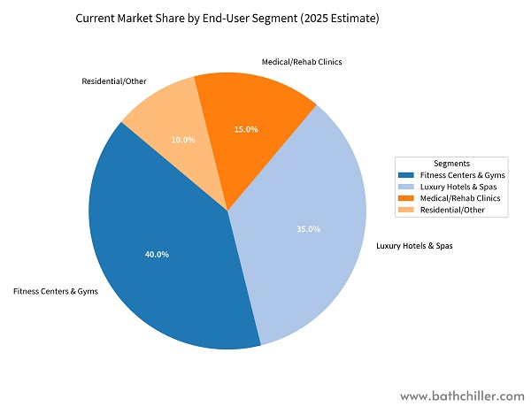 Роскошные отели и спа 35% Создание уникальных впечатлений для гостей (например, термоциклинг: сауна + ледяная ванна). Универсальный интеллектуальный чиллер Ultra & Luxury Cold Plunge: эстетически превосходный, бесшумная работа.